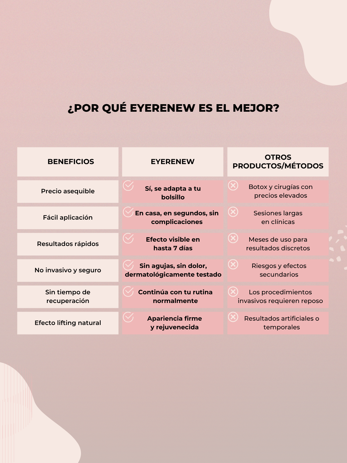 En una semana ya noté mi piel más firme y las ojeras mucho más claras. ¡Parece que hubiera dormido 10 horas todas las noches! Ya no puedo estar sin EyeRenew.